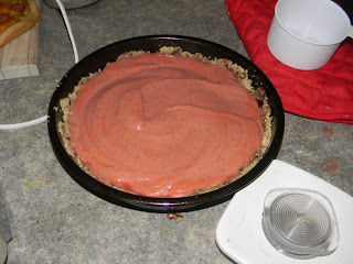 When smooth, pour into pie crust and then mix in the extra cup of fruit. You can place in the fridge (for 3 hours or overnight) or I place in the freezer if we aren't going to eat it all in one night and just take out one piece at a time.